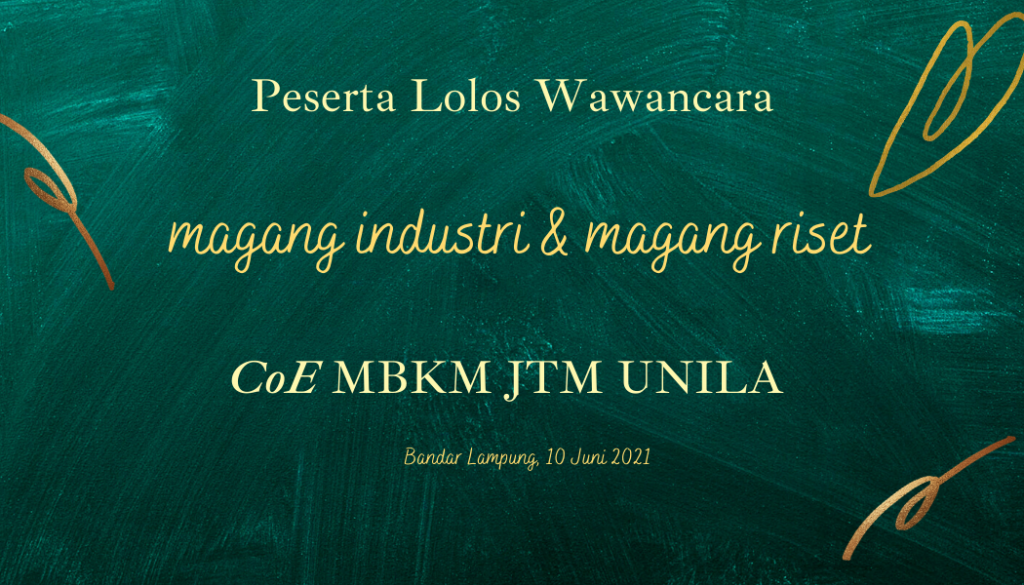 Berikut disampaikan nama-nama calon peserta yang lolos wawancara magang industri dan magang riset hibah CoE MBKM tahun 2021.